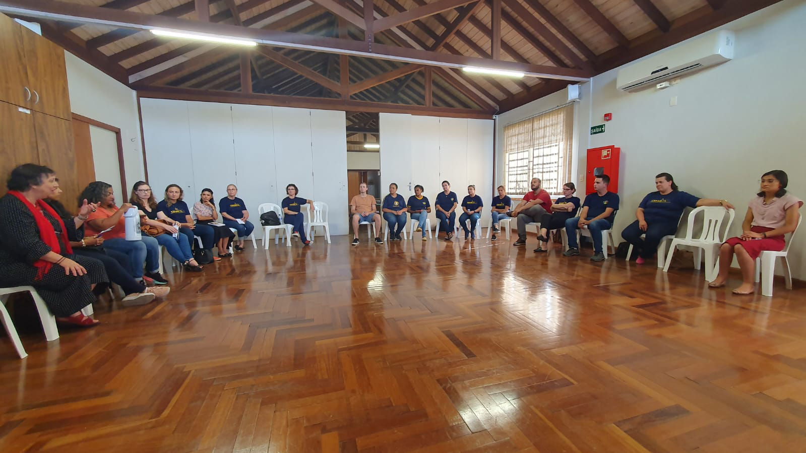 This workshop, in the form of continuous professional education, had as participants two groups of educators, teachers and other educational profissionals from the social and educational projects of this Institute, CEFASOL (Centro de Referência Familiar Recanto do Sol) and Escola Infantil Jardim de Maria . Its purpose was to introduce these professionals to Active and Creative Learning Methods, from the perspective of Social and Educational Inclusion, aiming the development of spontaneity and creativity, based on the philosophy of Jacob Levy Moreno (1889-1974) . Both groups, in a total of 40 participants, gladly joined the proposed activities, expressed their satisfaction for meeting and participating in this training, together, out of the demanding daily routines.