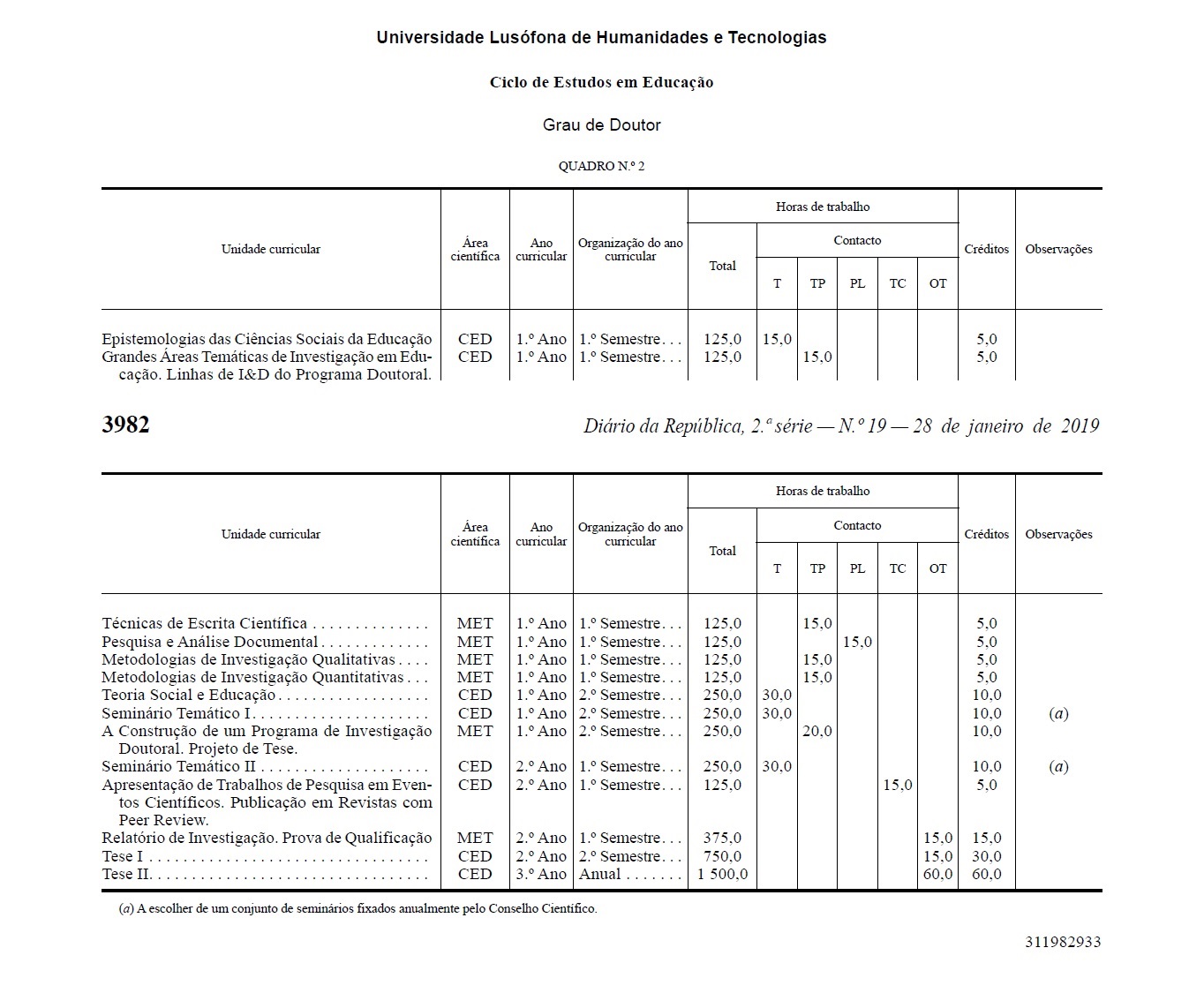 It was approved the Order no. 996/2019, which authorizes a new curricular plan for the PhD in Education from Universidade Lusófona de Humanidade e Tecnologias.
