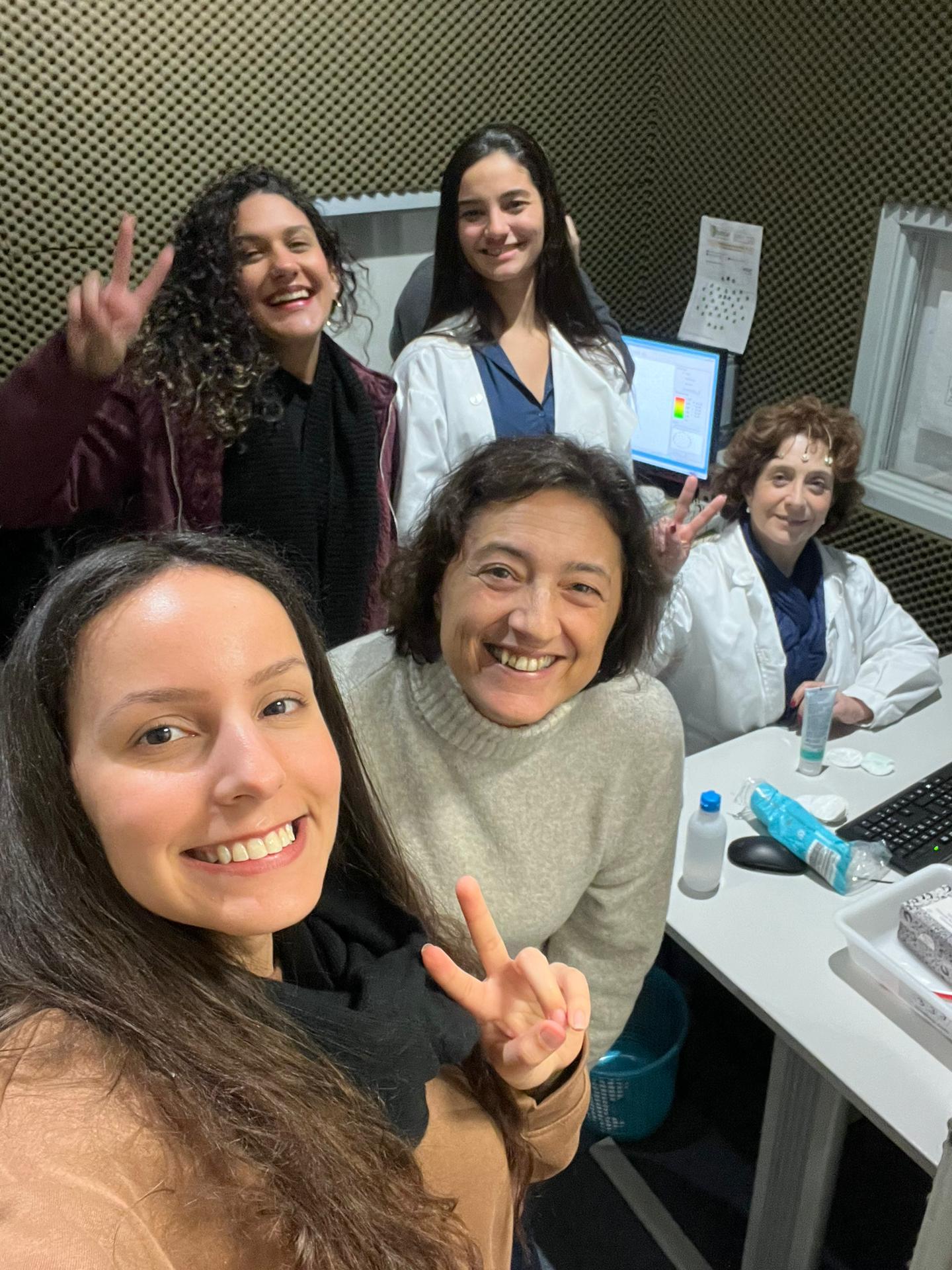The purpose of the visit to the laboratory was to learn about and participate in an experimental task using electroencephalography (EEG) on the impact of verbal and non-verbal language on interpretation brain activity. In the occasion, the students received information about the technique used and actively participated in the task, in order to initiate themselves in the practices of interdisciplinary research between Education and Neuroscience that is practiced and expected from the students of this course.