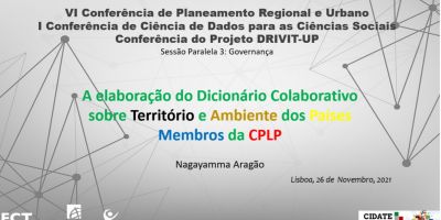 On the past 26 November, CIDATE researchers Nagayamma Aragão, Carlos Smaniotto Costa and Zuinder Manico, presented at the Conference on Regional and Urban Planning organized by the University of Aveiro, the communication entitled The elaboration of the Collaborative Dictionary on Territory and Environment of the CPLP Member Countries in the “parallel session 3. Governance”. In this paper, elaborated in the scope of the project Dicionário Ilustrado do Território e Ambiente | DITA (Illustrated Dictionary of Territory and Environment), the theoretical framework and the modulation of the platform architecture were presented, following the work developed in L3EP, focused on territory, environment, co-creation, citizen science.
