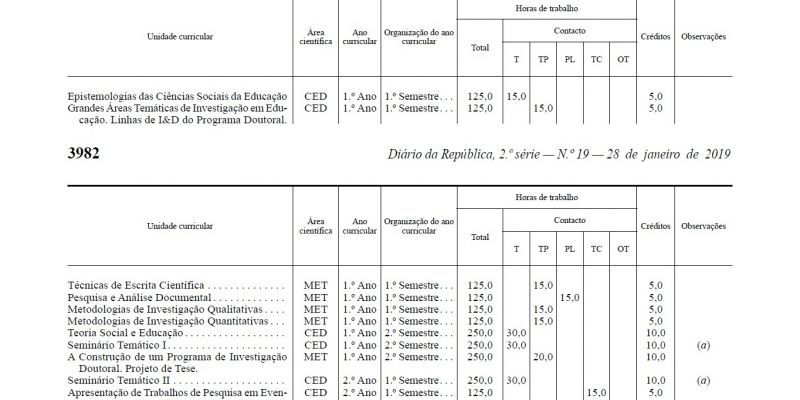 27 de fevereiro 2019 – 15h00New PhD in Education curricular plan