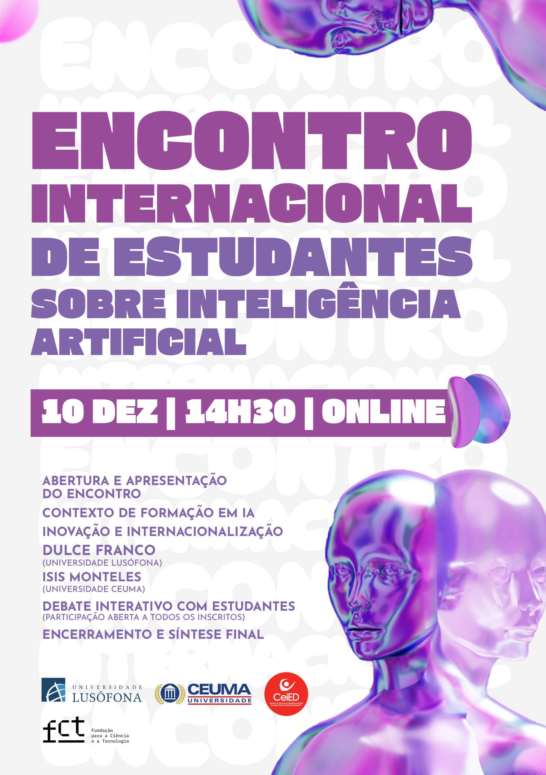 O Encontro Internacional de Estudantes sobre Inteligência Artificial irá acontecer online das 14h30 às 16h30.
