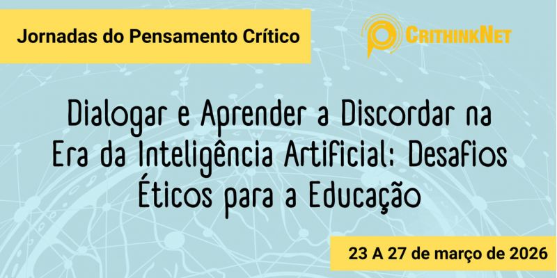 A Rede Portuguesa de Pensamento Crítico (CrithinkNet) anuncia as Jornadas do Pensamento Crítico, sob o tema “Dialogar e Aprender a Discordar na Era da Inteligência Artificial: Desafios Éticos para a Educação”. O evento decorrerá de 23 a 27 de março, entre as 18h30 e as 21h, em formato totalmente online.